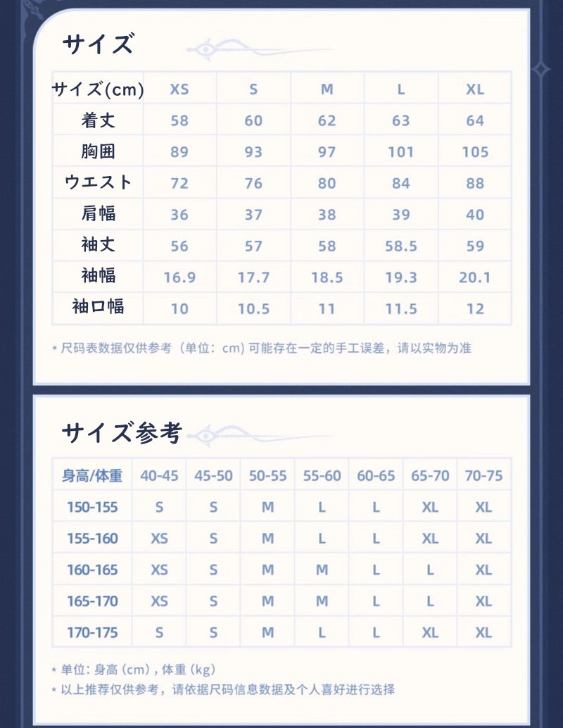 | サイズ | サイズ表参照 |